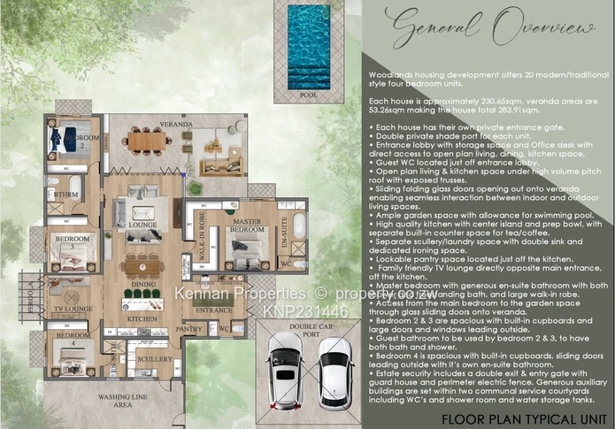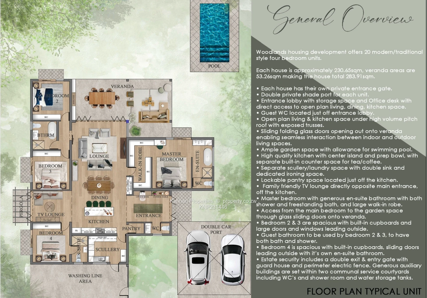 Upon entering the complex, which is walled, gated and has s security station at the entrance, a central driveway leads to all units. Each unit is individually walled and gated, further increasing privacy and security. With an offering of 3 carports per townhouse there is plenty of space for owners and visitors.