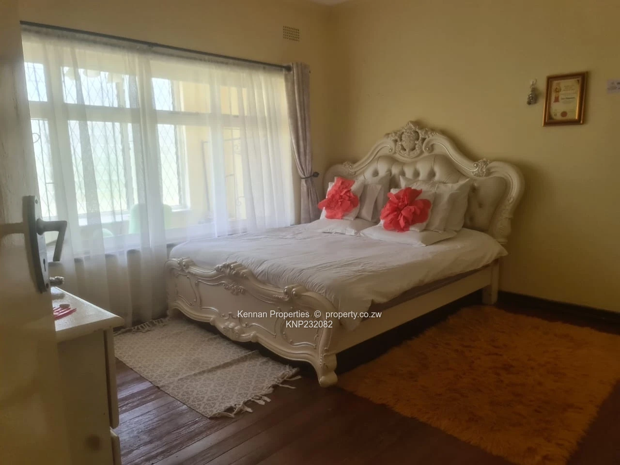 amenities including a shopping Centre, schools and major roads. The apartment features 2 bedrooms each with fitted cupboards, a bright open plan lounge and dining area, fitted kitchen, a separate bathroom and toilet, Outside is a beautiful, land scaped garden with lush, well-maintained lawn and manicured flower beds, has a prolific borehole, single carport and is walled with an electric gate. Tenant occupied and paying monthly rentals of $600 and levies at $100 per month. Share block Scheme {Share certificate}