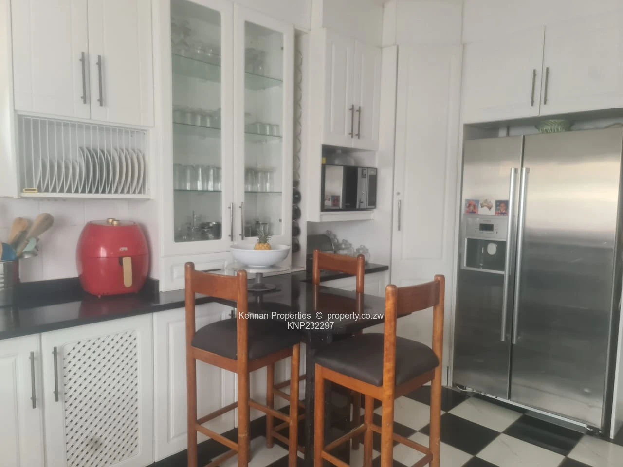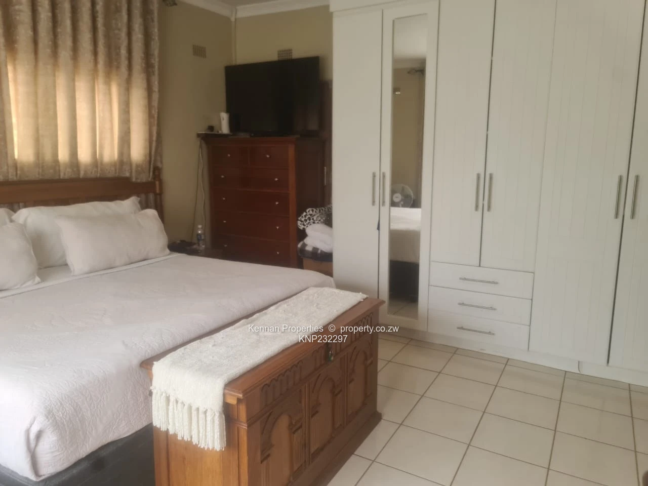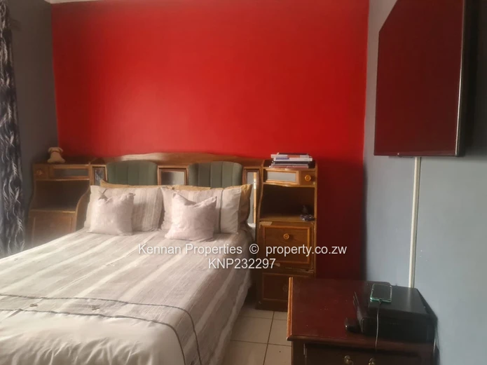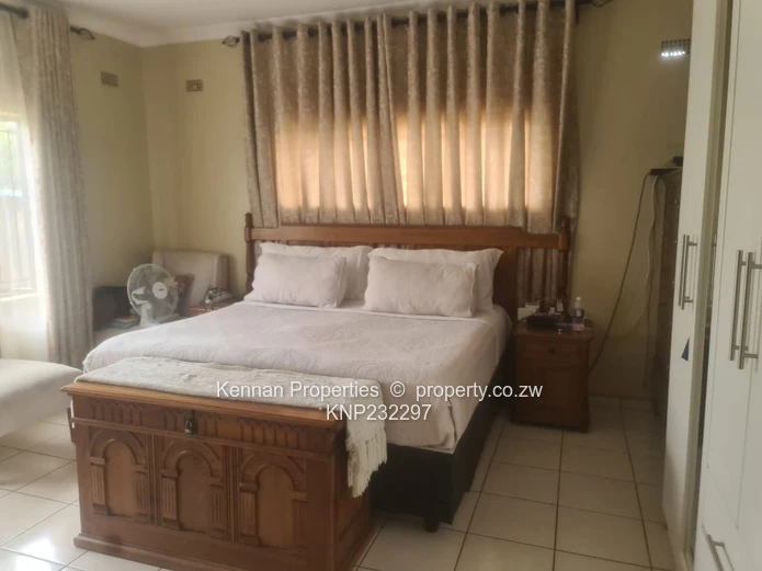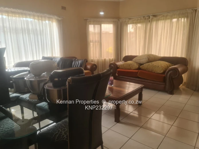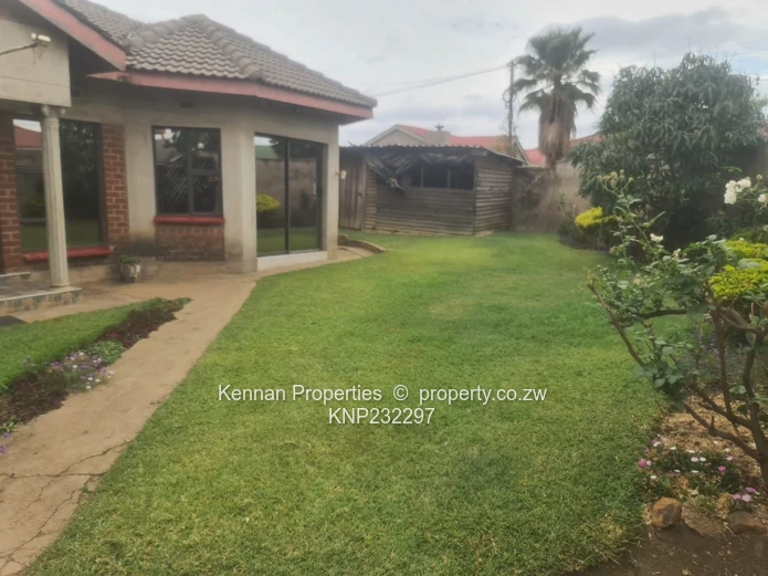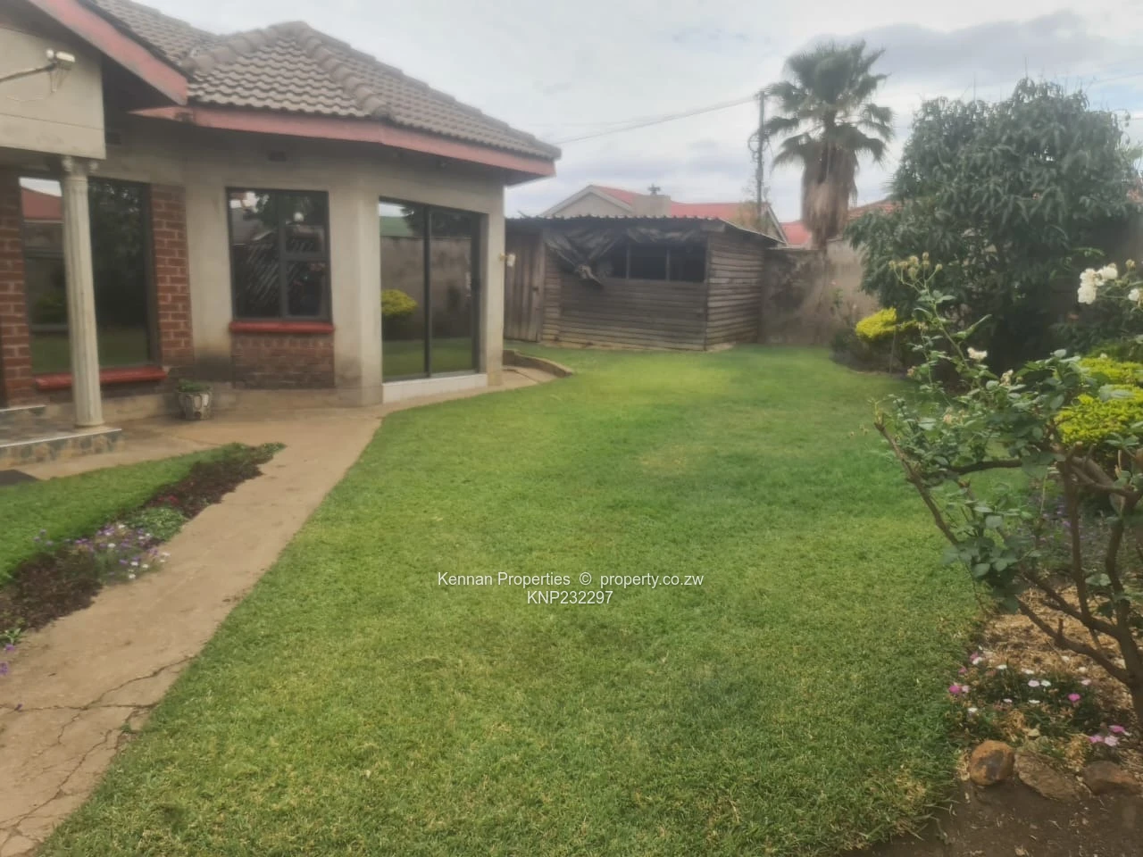 This solid, beautifully landscaped 4 bedroomed house, main en-suite located in Lenana Park Tynwald, sitting on 600sqm. The property has 2 Lounges, dining room, fitted Kitchen, laundry room, bathroom with toilet, double lock-up garage. The property was designed in such a way that the one section can be used as a guest wing with its own bathroom and toilet, bedroom and Lounge as well as its own separate electricity meter; making it fully self-contained. Municipal water, a well with a pump connected to a 5000l water tank. Property is walled and gated. Rentals $600 per month and good Tenant.